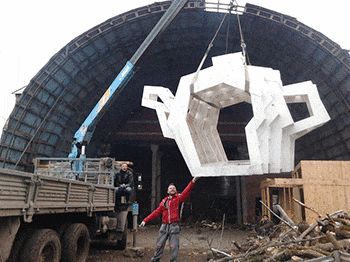 Проект для фестиваля Город Солнца (20 сентября - 2 октября 2010 года, остров Видо, Греция). Размышление на тему долговечности и пользы фестивальных объектов. Объект выполнялся при помощи деревянного каркаса и обычного надувательства, внутреннее пространство, предназначено для проведения классических греческих симпозиумов, вмещало более 30 человек!