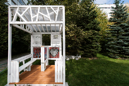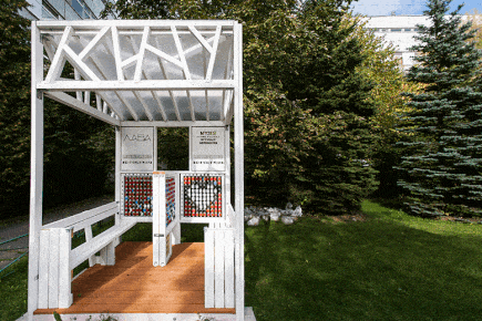 Проект с московским акцентом для фестиваля Архферма (23 июля – 7 августа 2011 года, Тульская область). Взгляд в будущее, в котором по Заокскому району курсируют многоэтажные автобусы. Объект возведен при активном участии местных жителей. Позднее, по их пожеланиям, была добавлена задняя стенка в стиле Пита Мондриана. Премия Arhiwood 2012 в номинации "Перспектива".